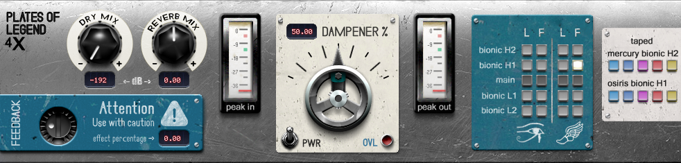 Here we have 2 more plate reverbs, sampled in stereo and with adjustable damper controls. The first one (I’ve named it Mercury) is another example of the most famous plate ever made (the same plate model I sampled four of for PoL 1 and 2). It’s the stereo model with the solid state amp, which I’ve already done two of (one each in PoL 1 and 2), but this one sounds very different from those two. As explained in more detail in the manual different plates even of the same model can sound very different, for a multitude of reasons.